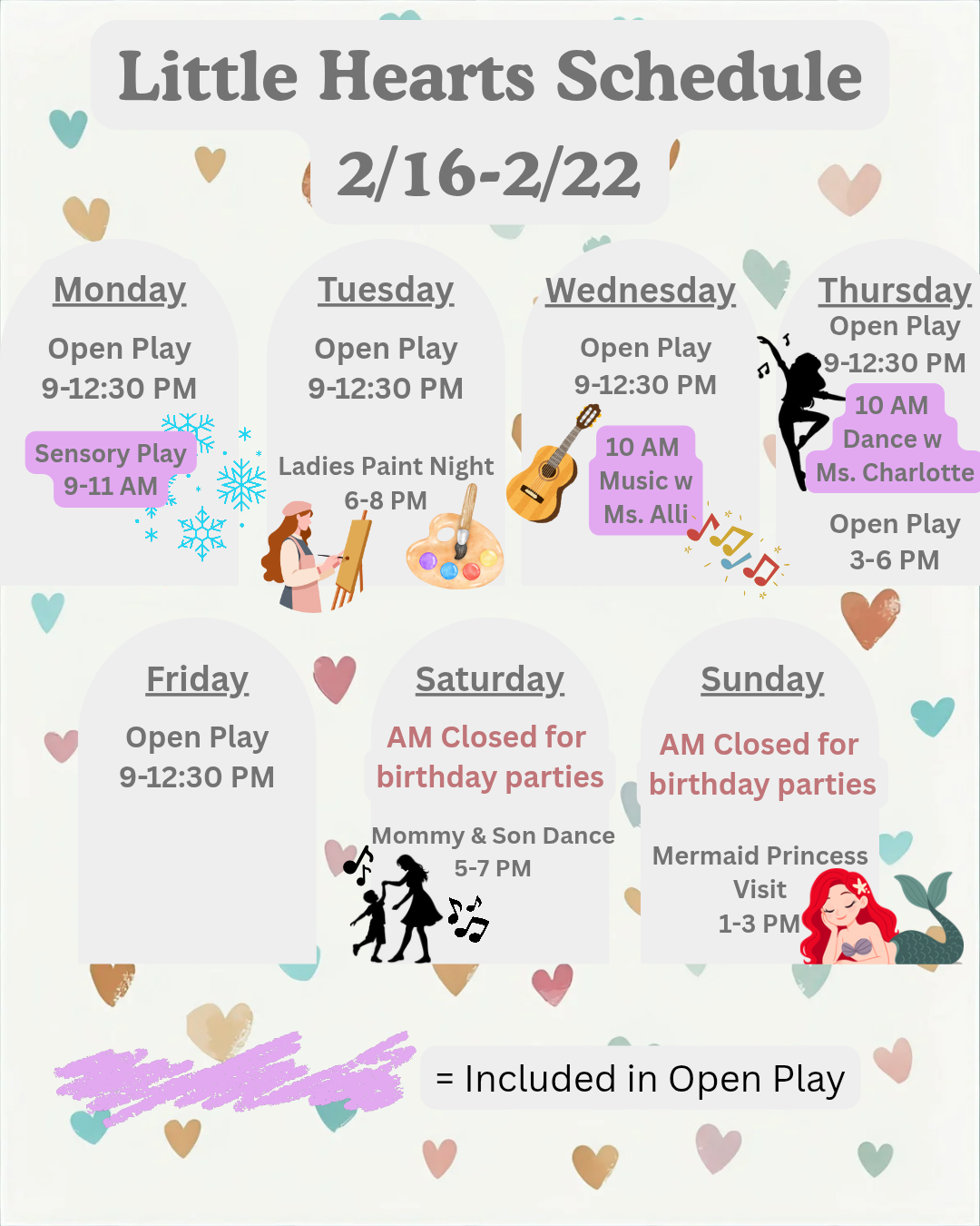 “What can we say? Little hearts is fantastic. The playroom is clean, toys are age appropriate and unique/high quality. The events held there are affordable and fun.”